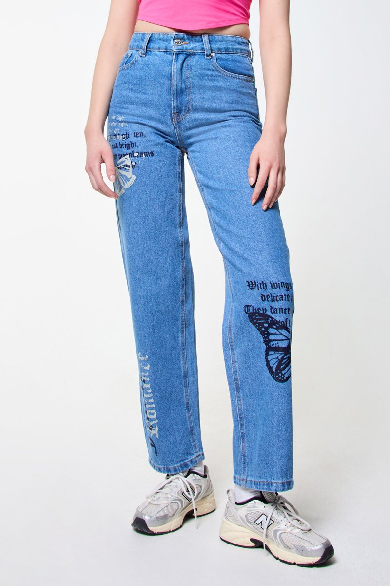 Lettrage et motifs papillons devant et au dos.