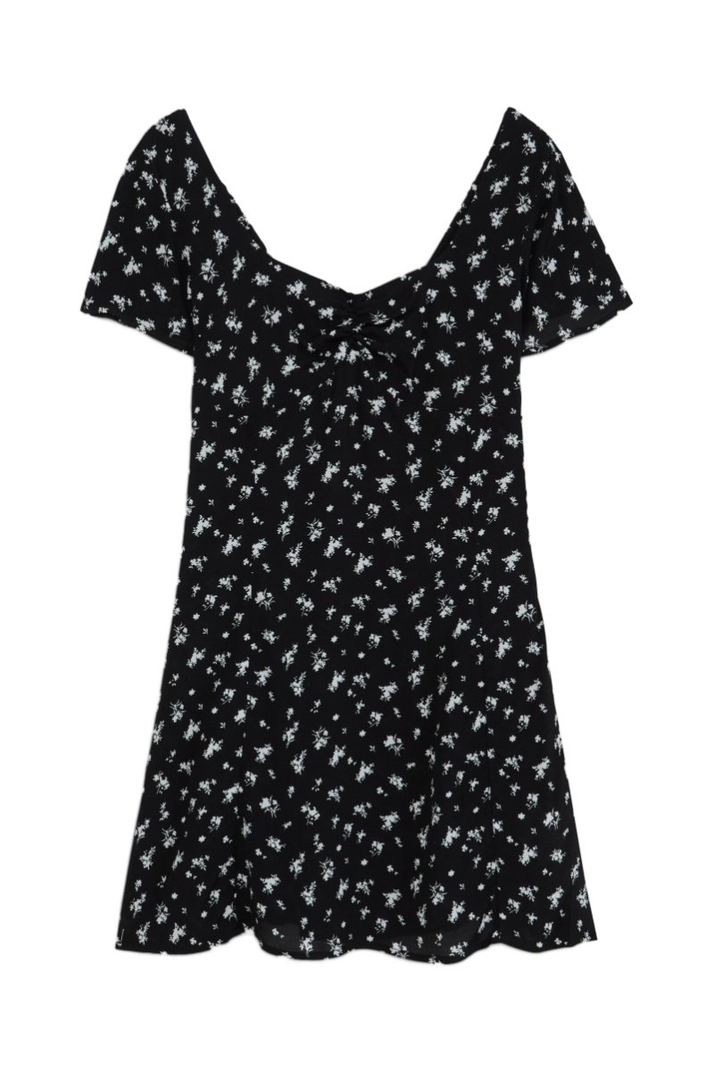 Robe trapèze à manches courtes.