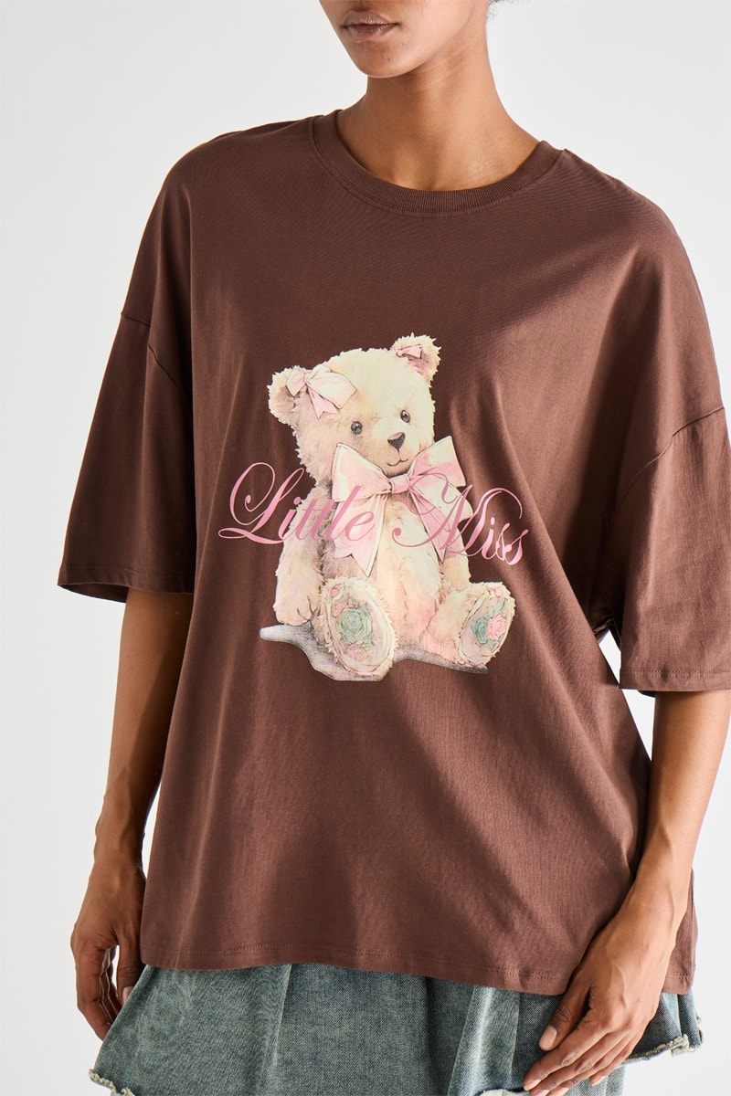 Lettrage et motif ourson devant.