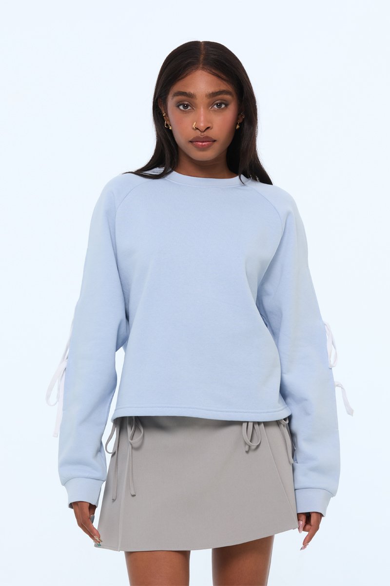 Sweat à manches longues raglan avec découpe et liens à nouer.