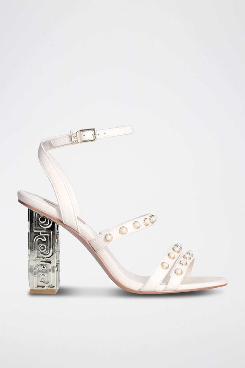 Sandales à talons en cuir de chèvre Serena - Ecru