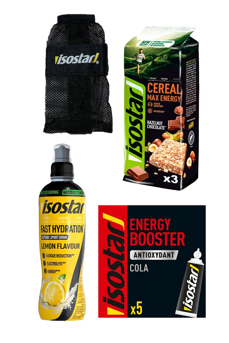 3 gels énergétiques Energy Booster Cola, 6 boissons Fast Hydratation saveur Citron et 6 barres énergétiques Céréal Max noisette et chocolat - 100 g, 500 ml et 165 g