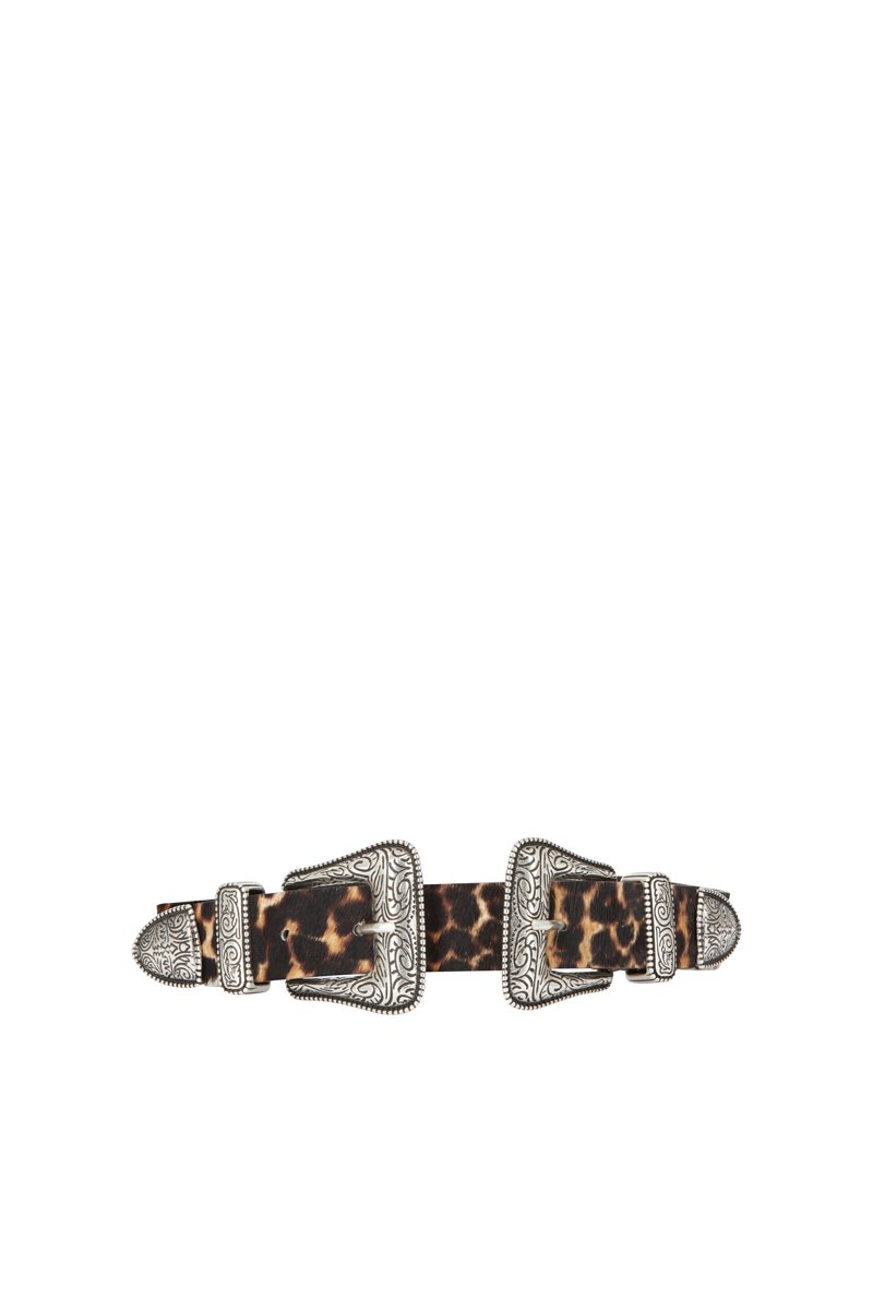 Ceinture à double boucle en cuir de veau effet poulain.
