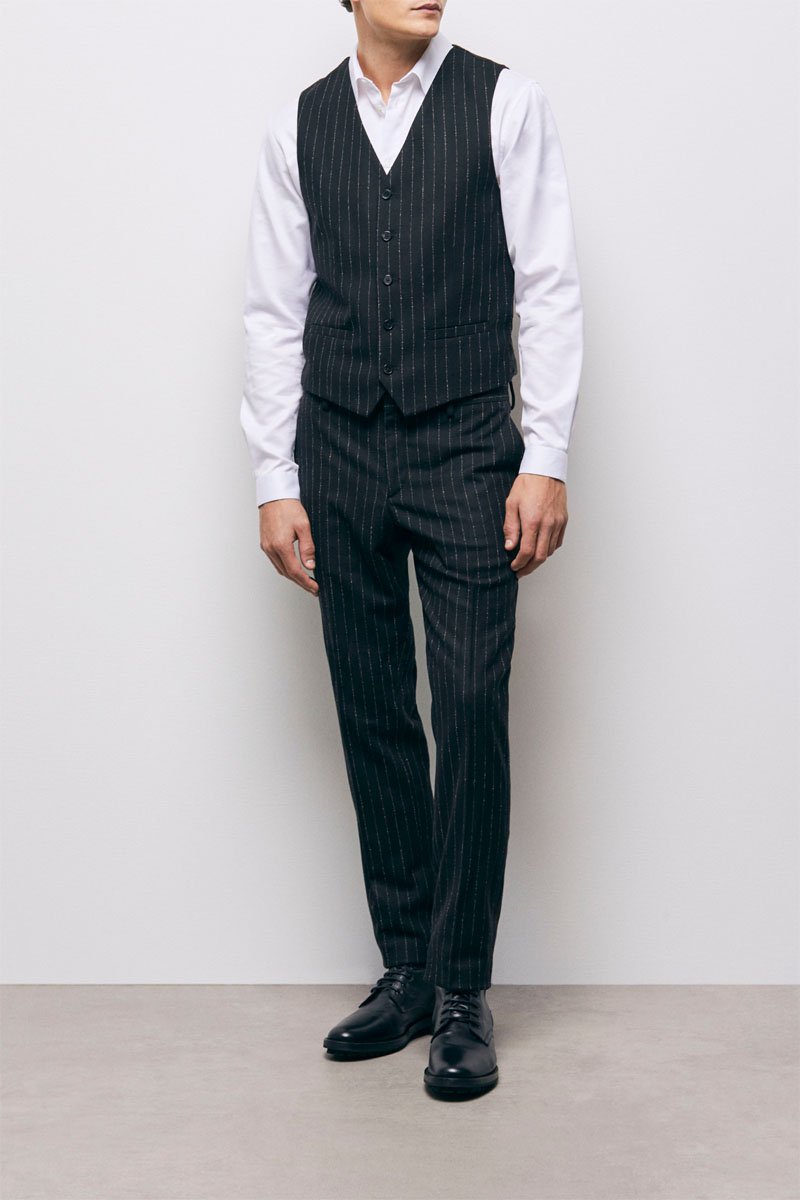 Le mannequin porte la taille 48 et mesure 1,84 m.