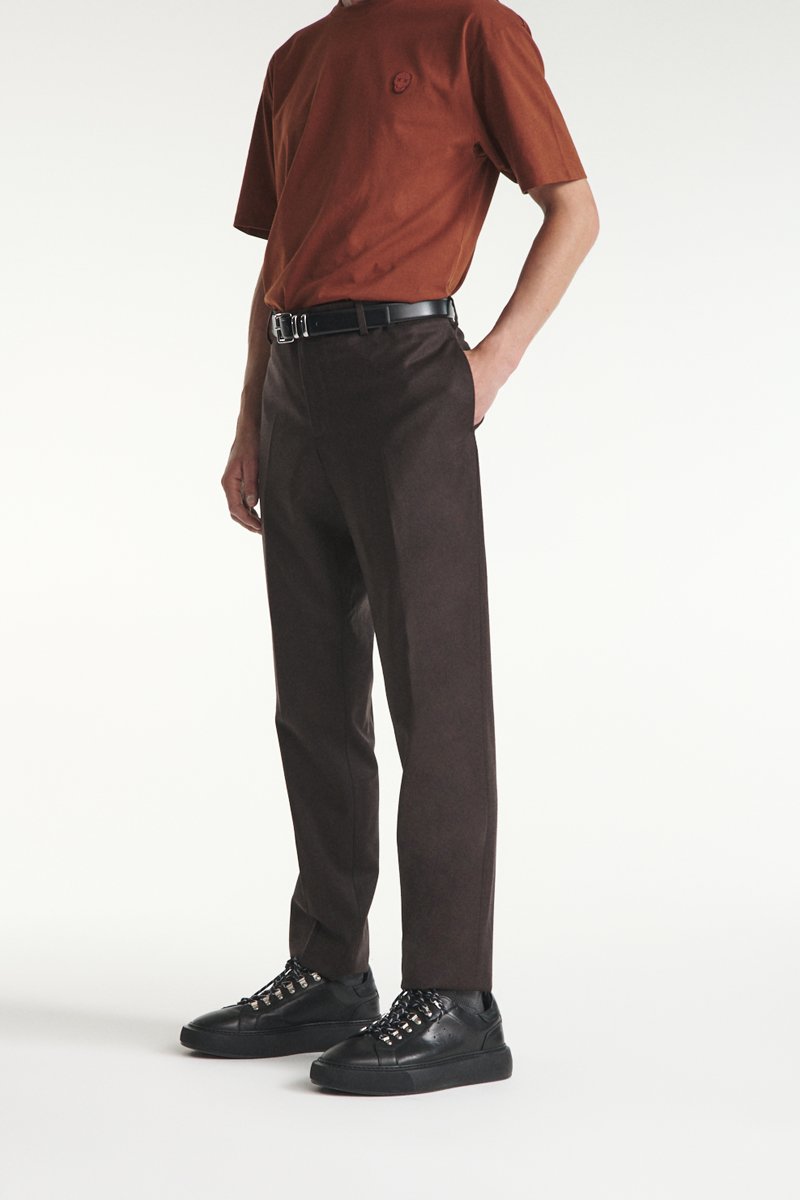Le mannequin porte la taille 48 et mesure 1,83 m.