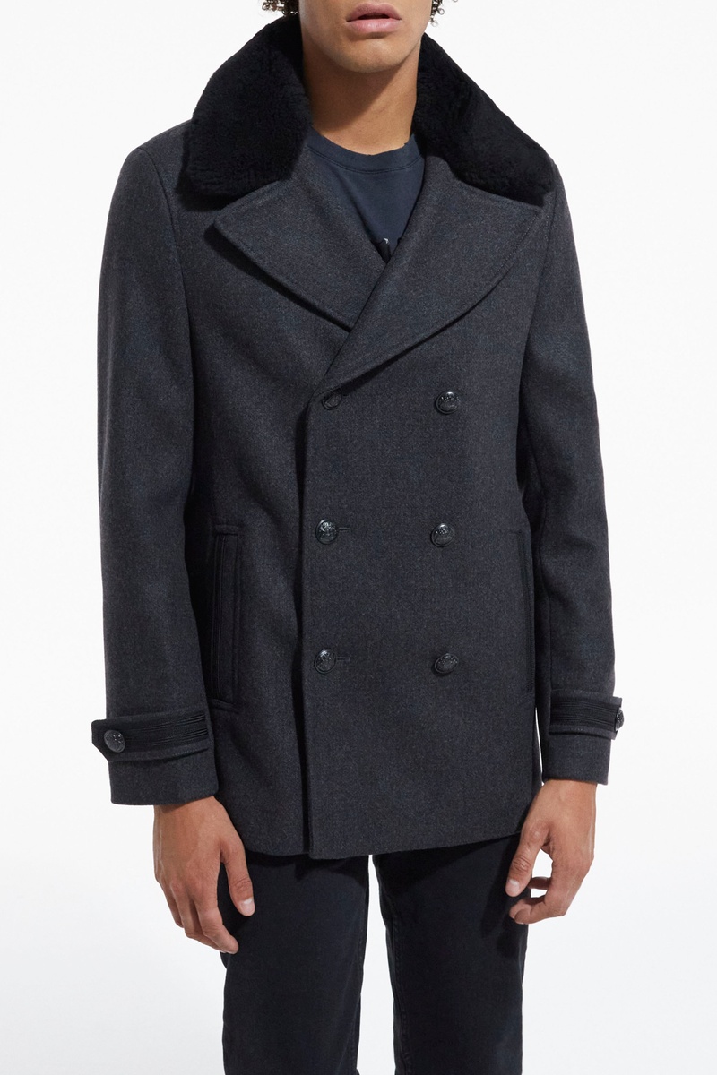 Caban en laine et fourrure de mouton - Anthracite chiné