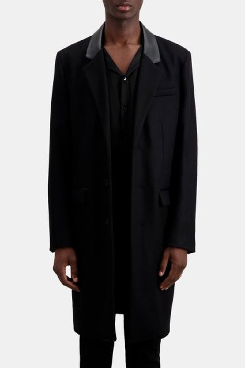 Empiècements en cuir d'agneau à l'encolure et sur les poches.