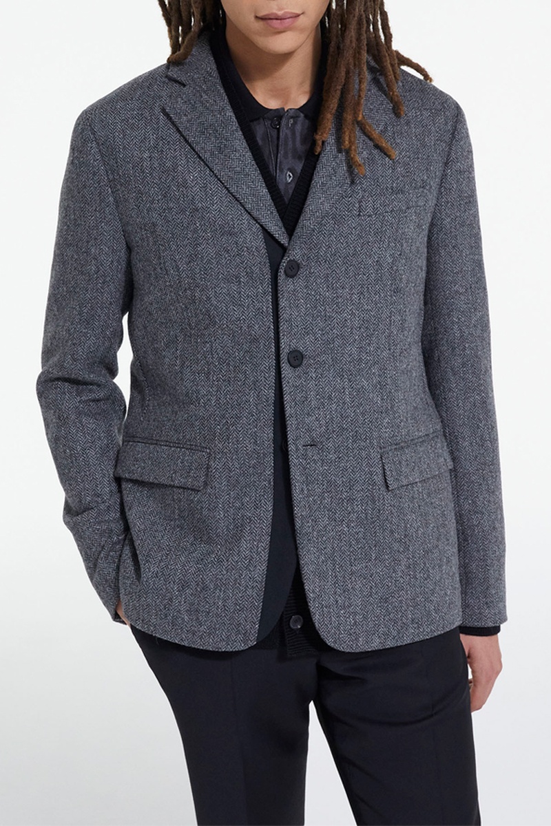 Le mannequin porte la taille 48 et mesure 1,83 m.
