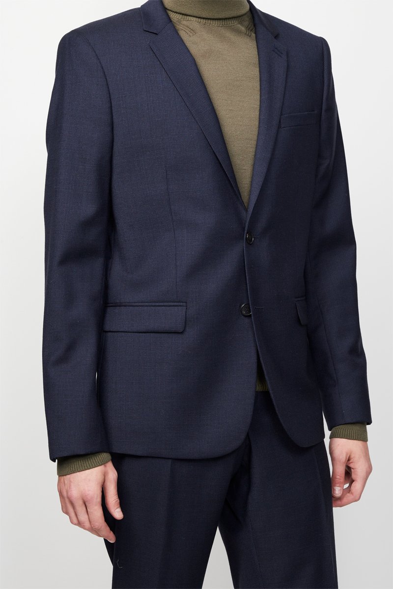 Le mannequin porte la taille 48 et mesure 1,83 m.