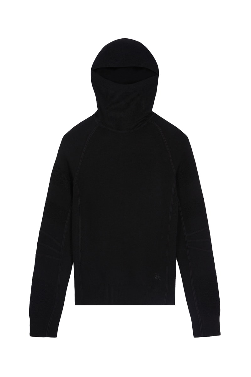 Pull en laine mélangée. Capuche.