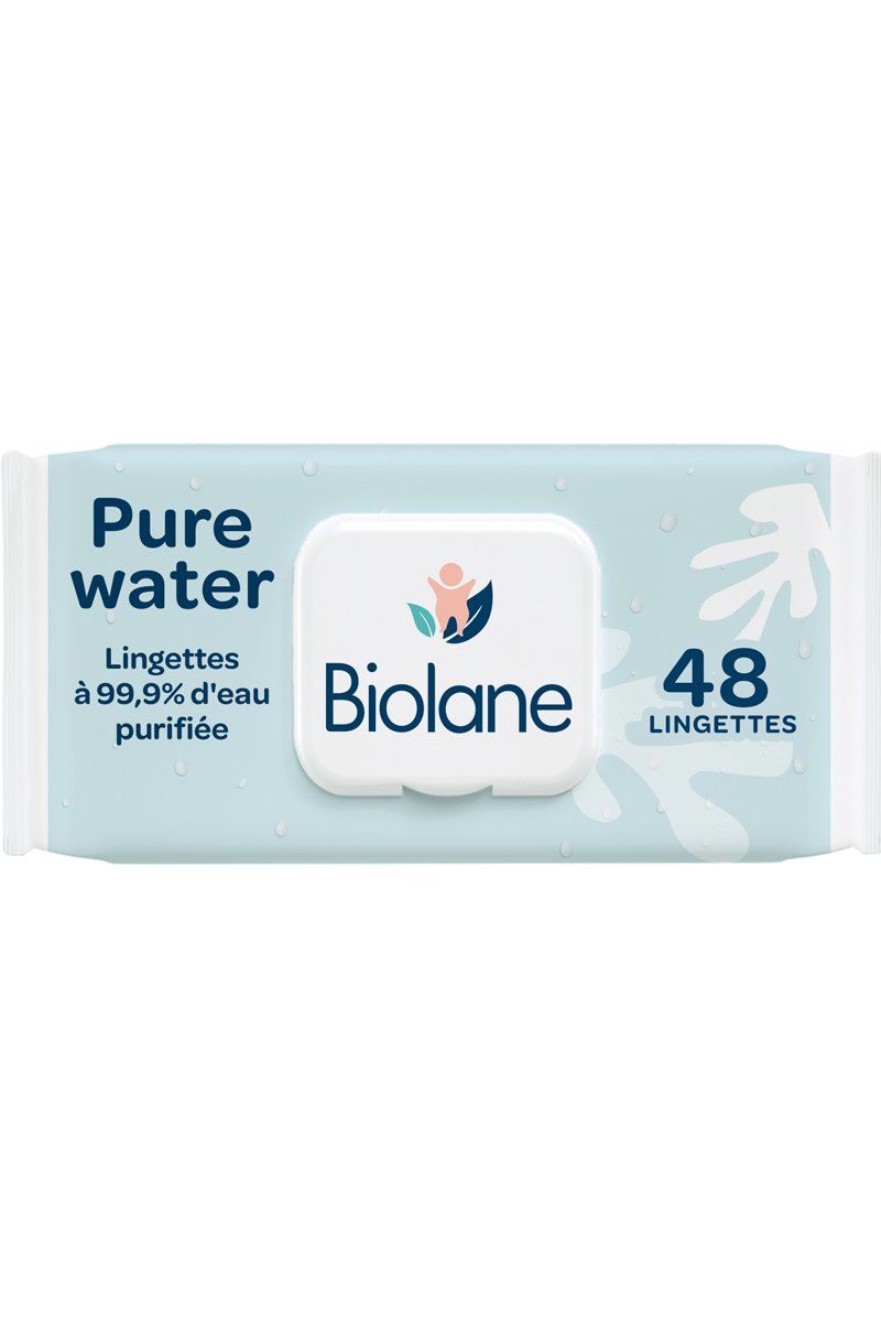 Les lingettes Pure Water Biolane nettoient délicatement et en un seul geste le siège, le corps et le visage de votre bébé.