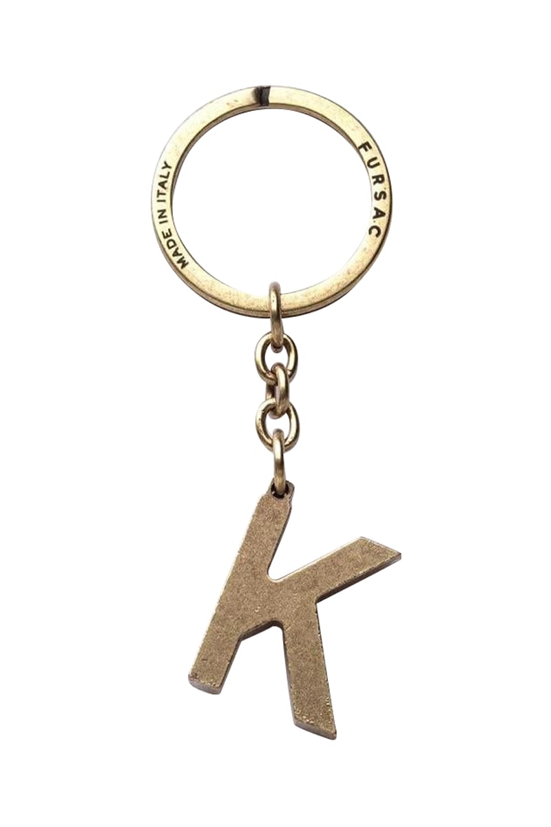 Porte-clés en laiton doré, avec une lettre K d'une hauteur de 2,5 cm, soulignée par une gravure Fursac sur l'anneau, alliant élégance et raffinement.