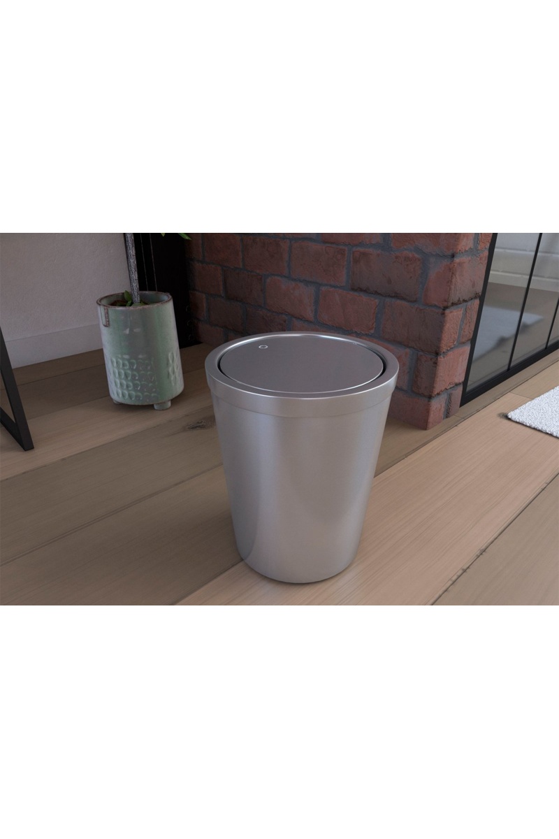 Poubelle de salle de bain à couvercle pivotant - Argenté