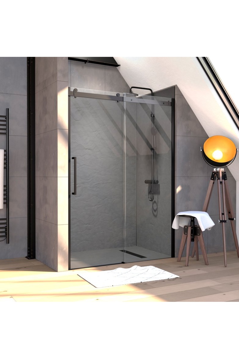 Paroi porte de douche coulissante - Transparent et noir