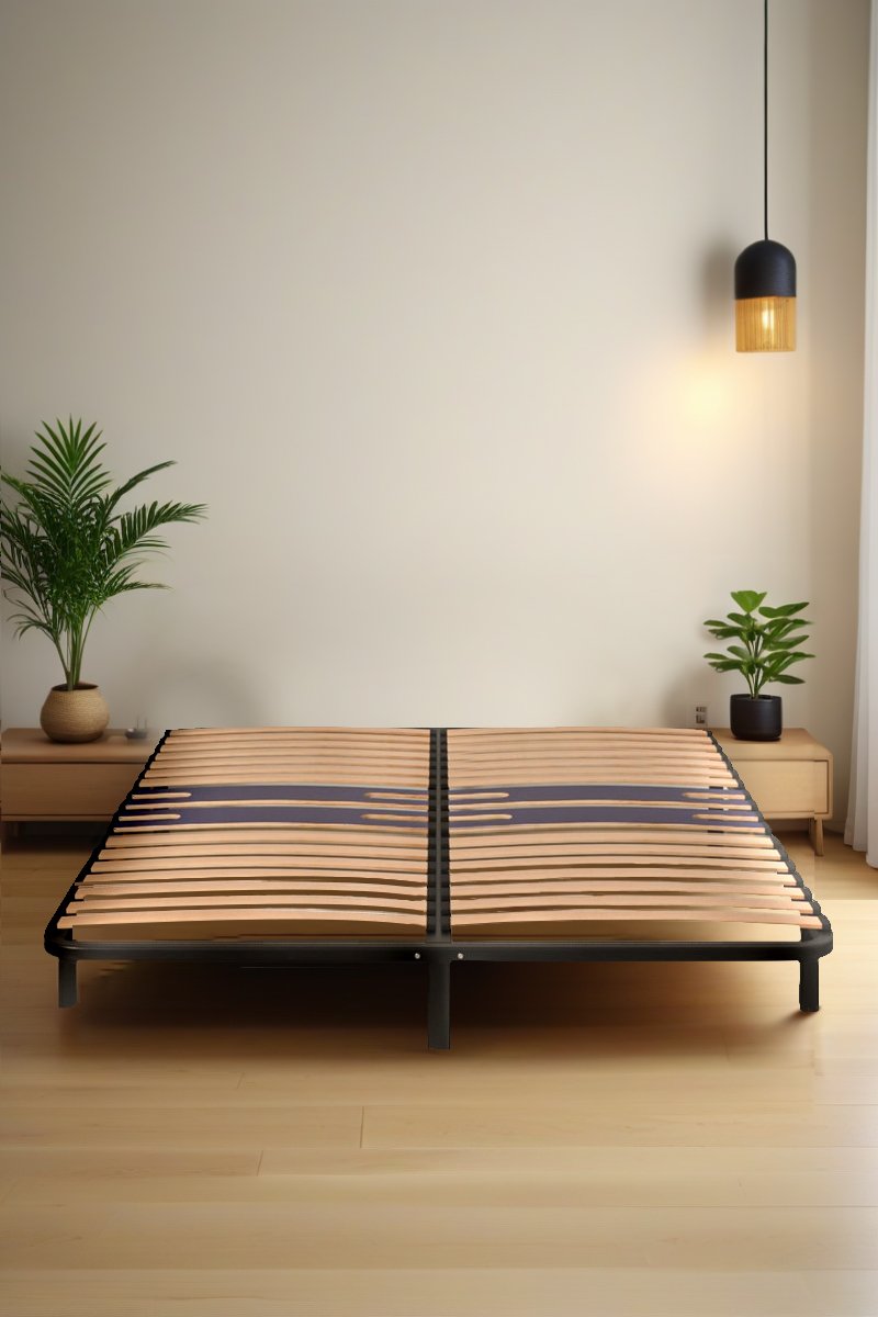 28 lattes, 4 doubles au niveau du bassin et 7 pieds pour les sommiers 2 places.