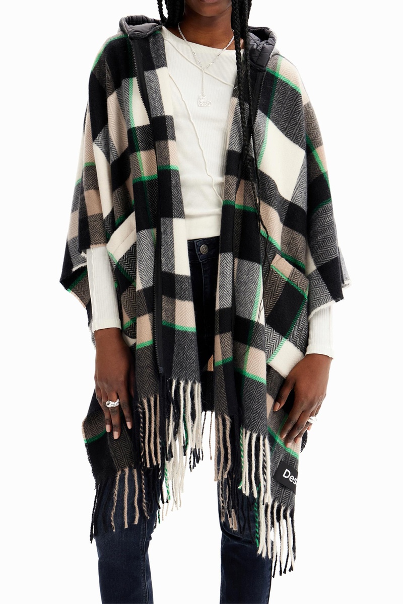 Poncho à capuche.