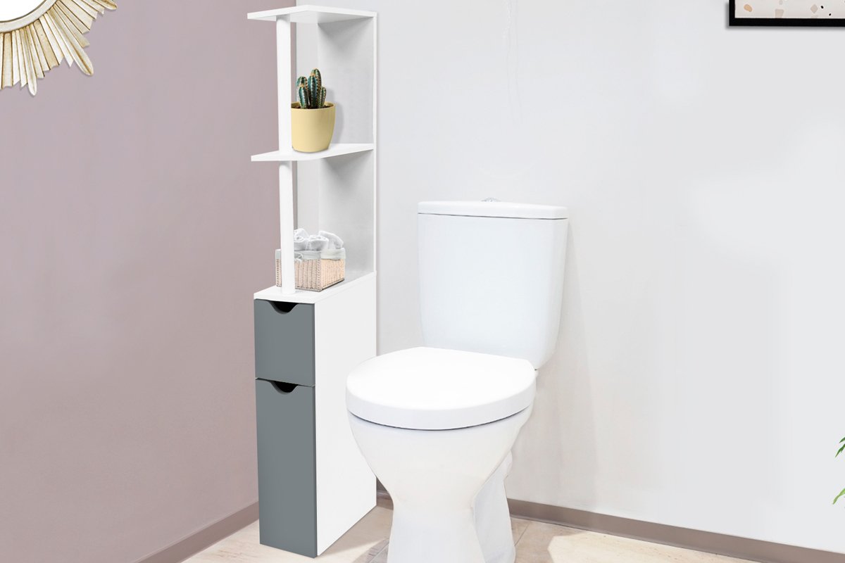 Meuble WC 2 portes - Blanc et gris foncé