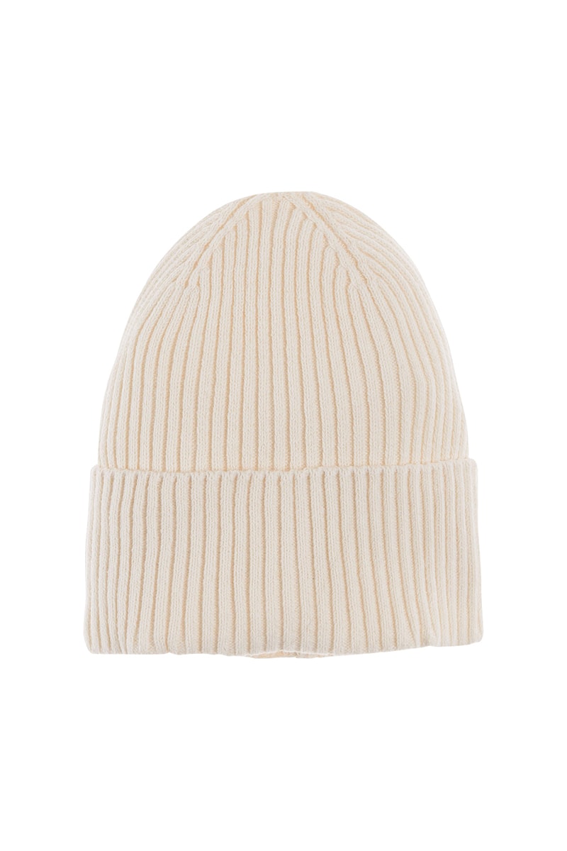 Bonnet en maille côtelée.