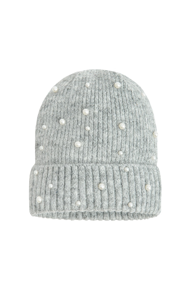 Bonnet avec perles décoratives.
