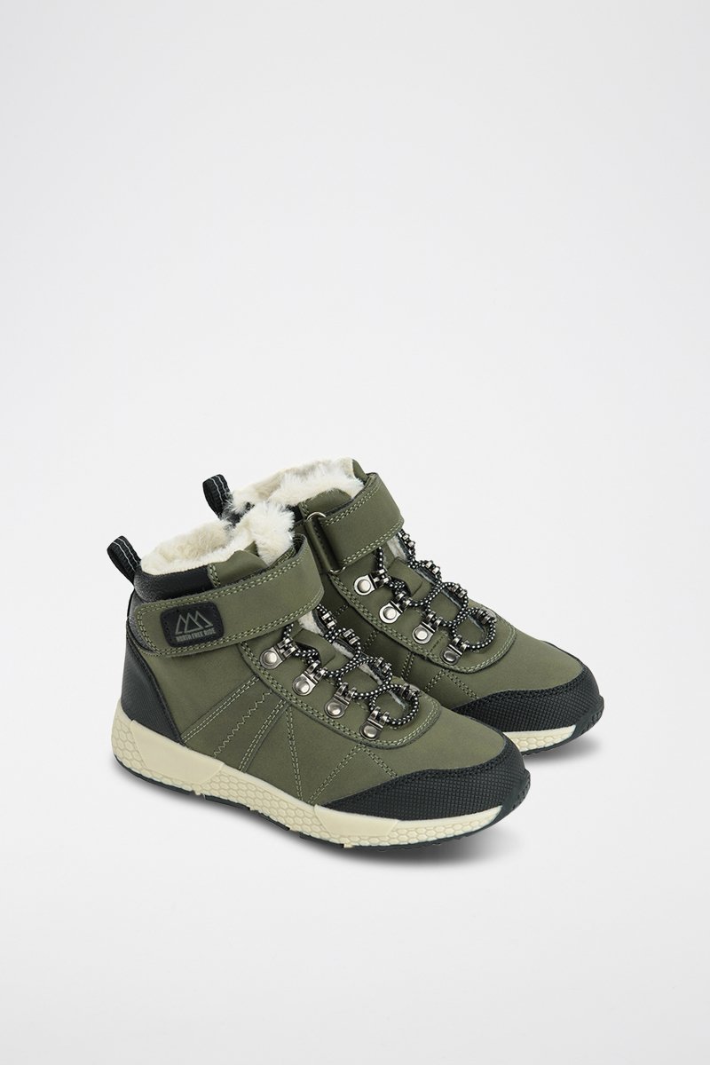Fermeture à lacets devant, par scratch devant et sur le côté et zippée sur le côté.