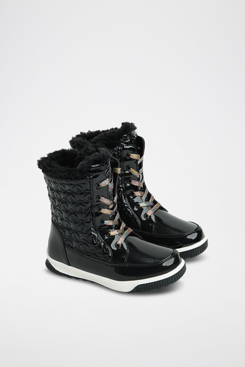 Bottines fourrées vernies.