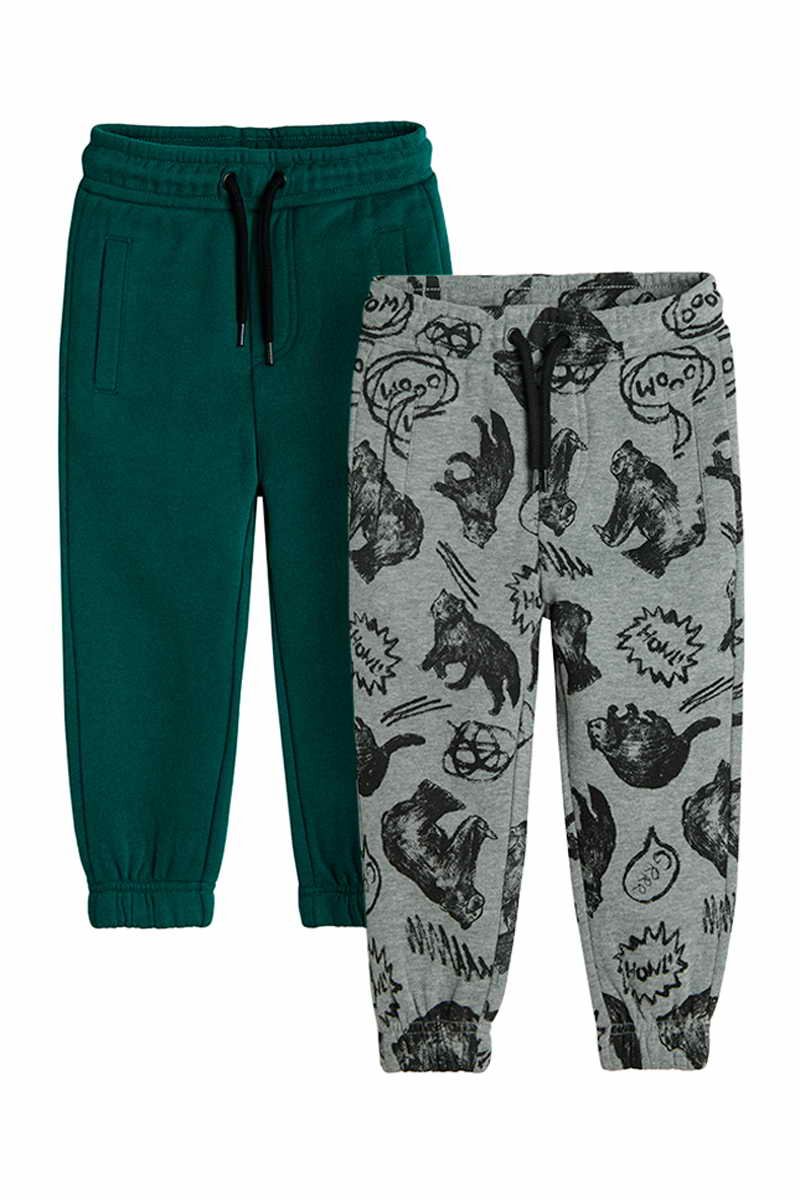 2 joggings dont 1 avec lettrage et à motifs fantaisie.