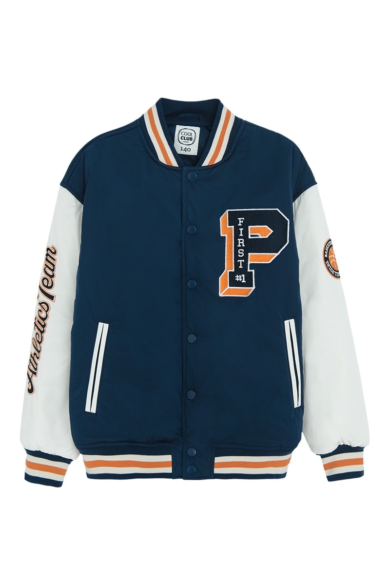 Patch avec lettrage et à motifs fantaisie sur la manche gauche.