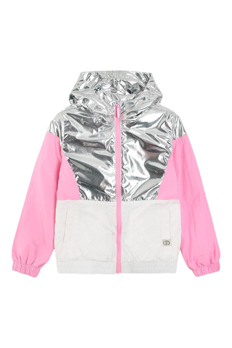 Empiècements effet métallisé sur la capuche, à l’encolure, devant et au dos.