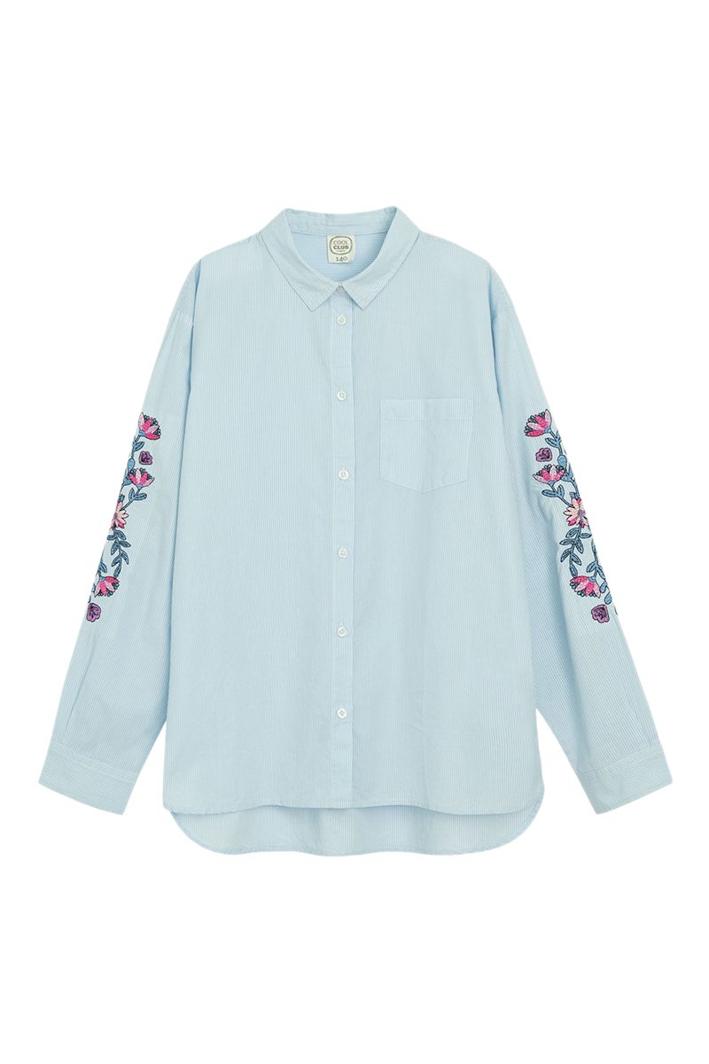 Chemisier à manches longues boutonnées à motifs fleurs brodés.