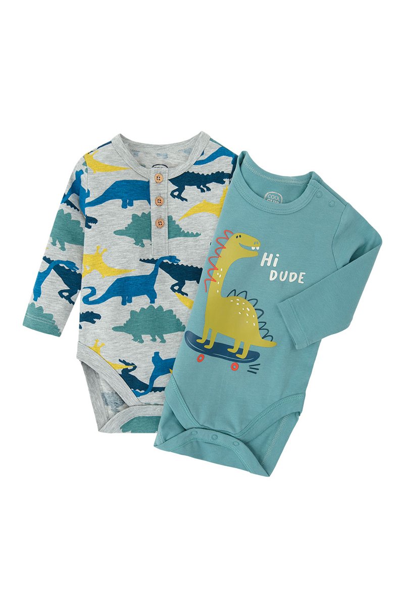 2 bodys - Gris chiné et bleu clair