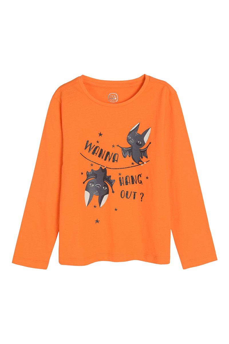 Lettrage pailleté, motifs chauve-souris et étoiles devant.