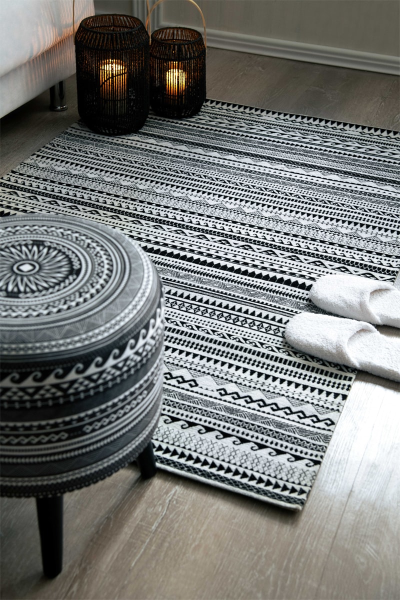 Tapis Etnico - Noir et écru - 110 x 165 x 0,7 cm