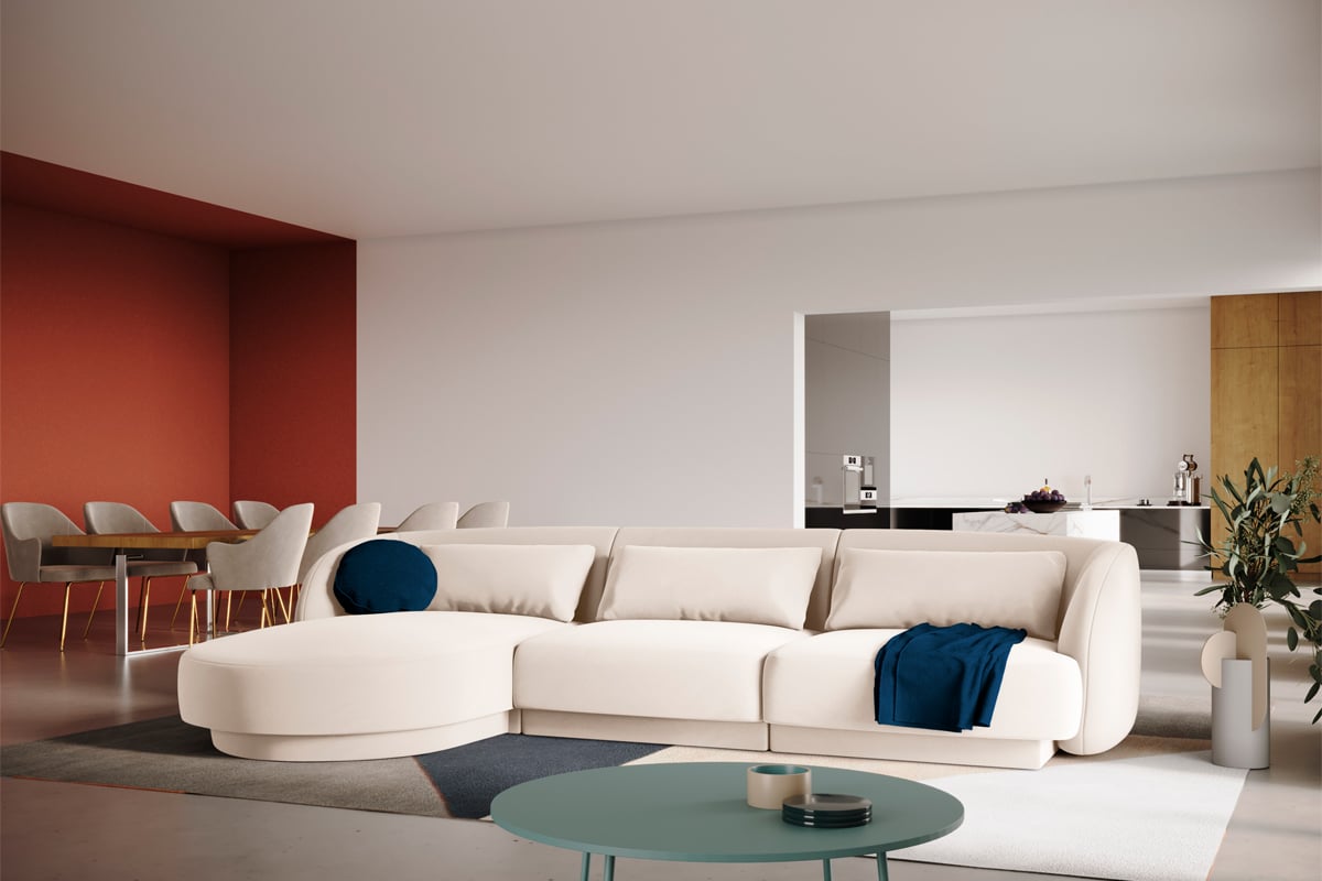 Canapé d'angle gauche Tulum - Beige clair - 4 places - Tissu velours
