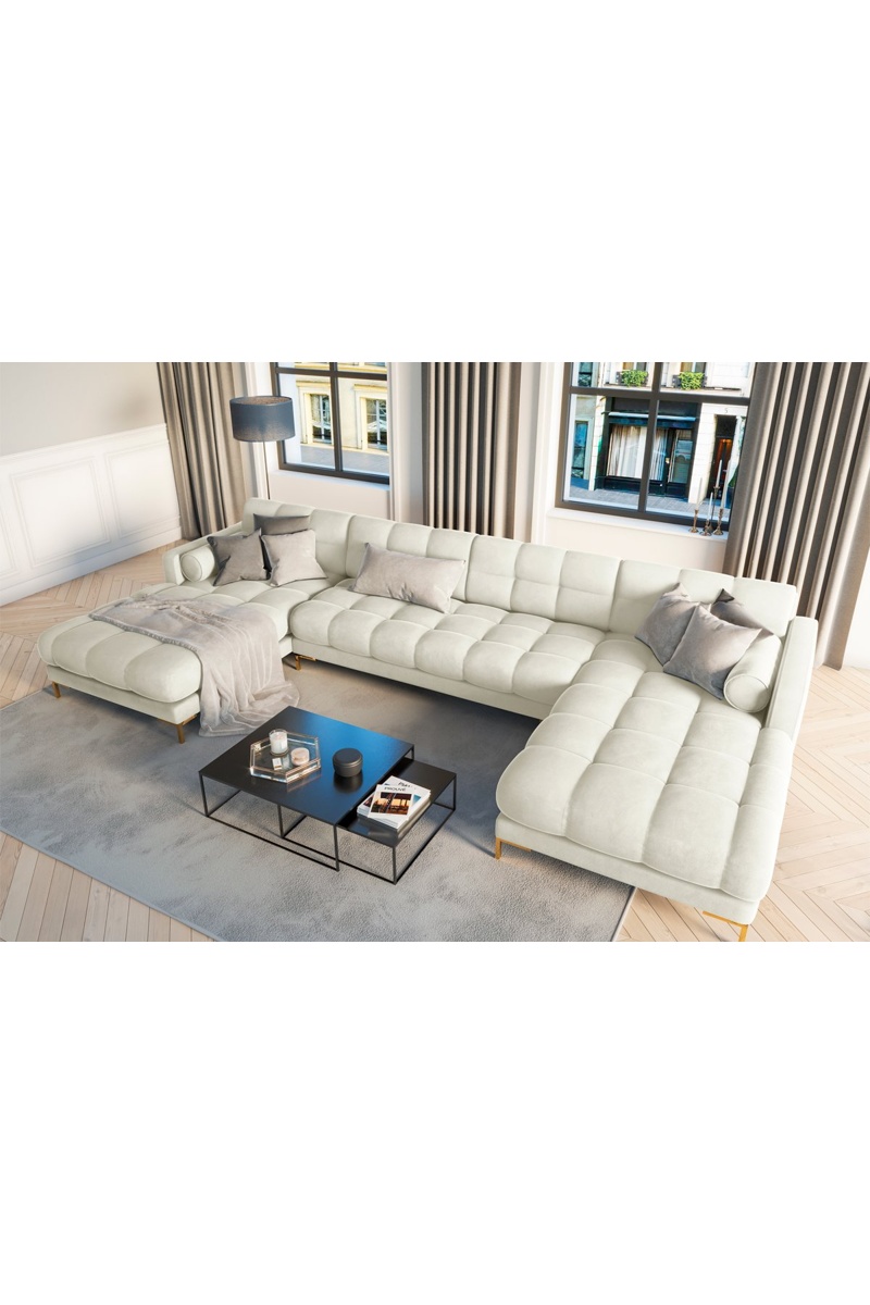 Canapé panoramique d'angle réversible Bali - Beige clair - 6 places - Toucher velours