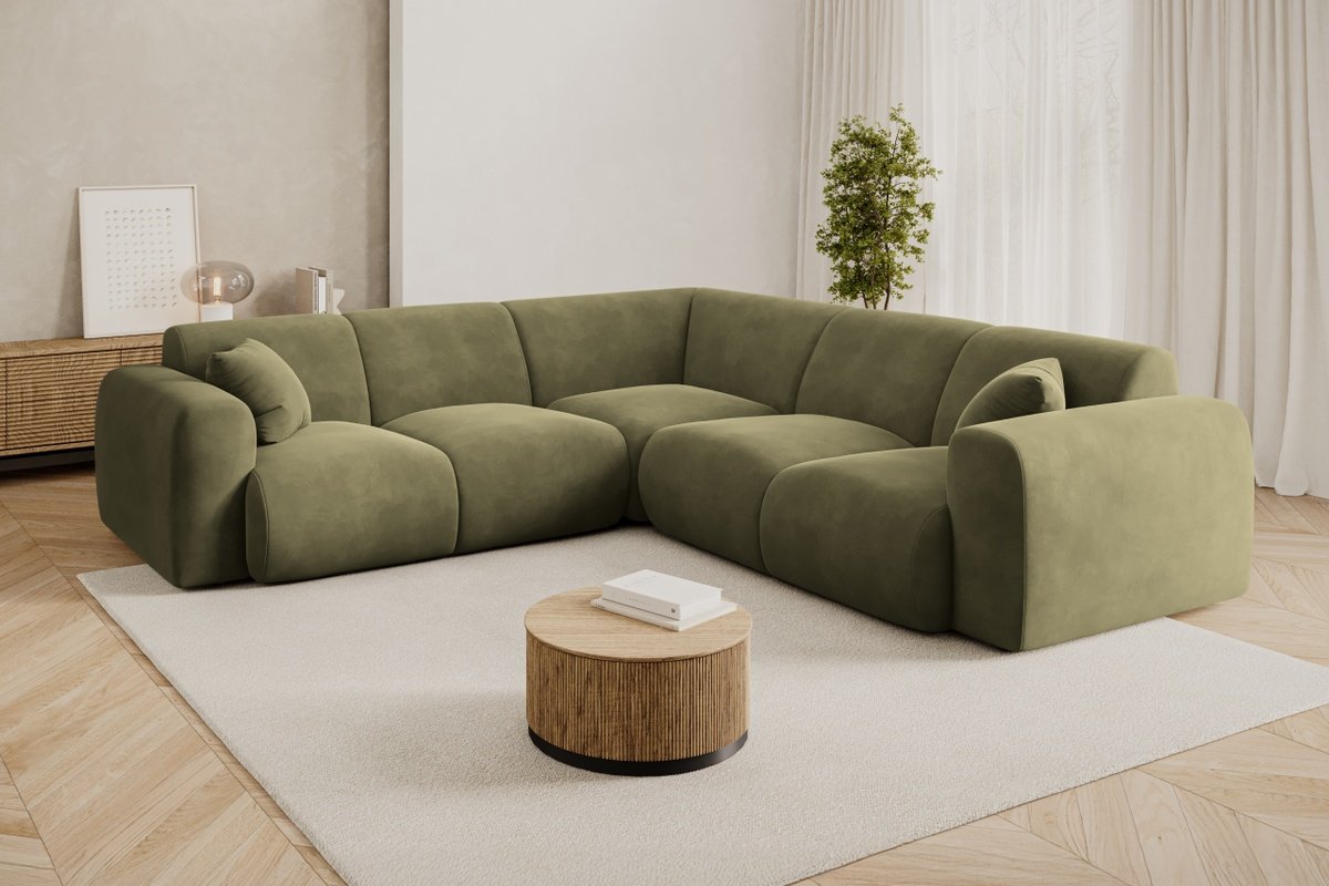 Canapé d’angle symétrique Nolio - Vert clair - 5 places - En tissu velours