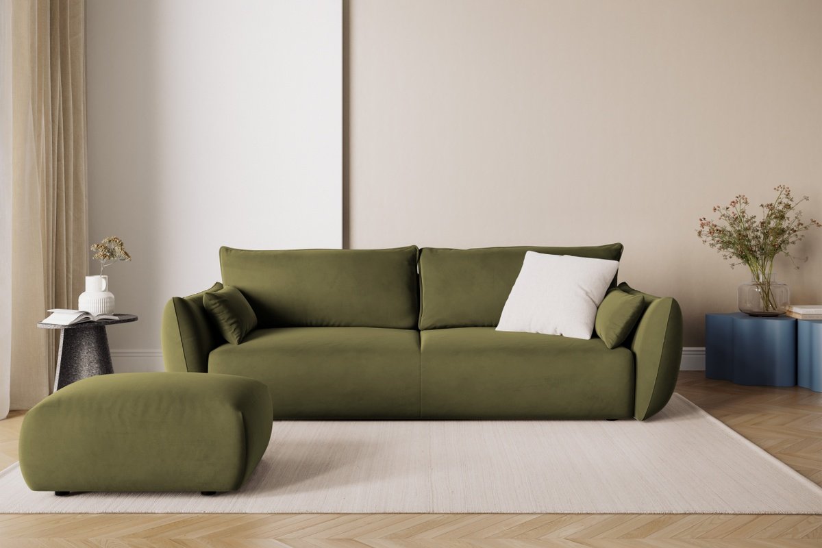 Canapé convertible Matera - Vert olive - 3 places - En tissu velours