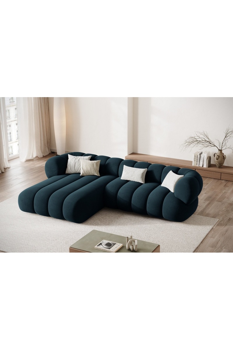 Canapé d’angle gauche Koge - Bleu pétrole - 5 places - En tissu velours