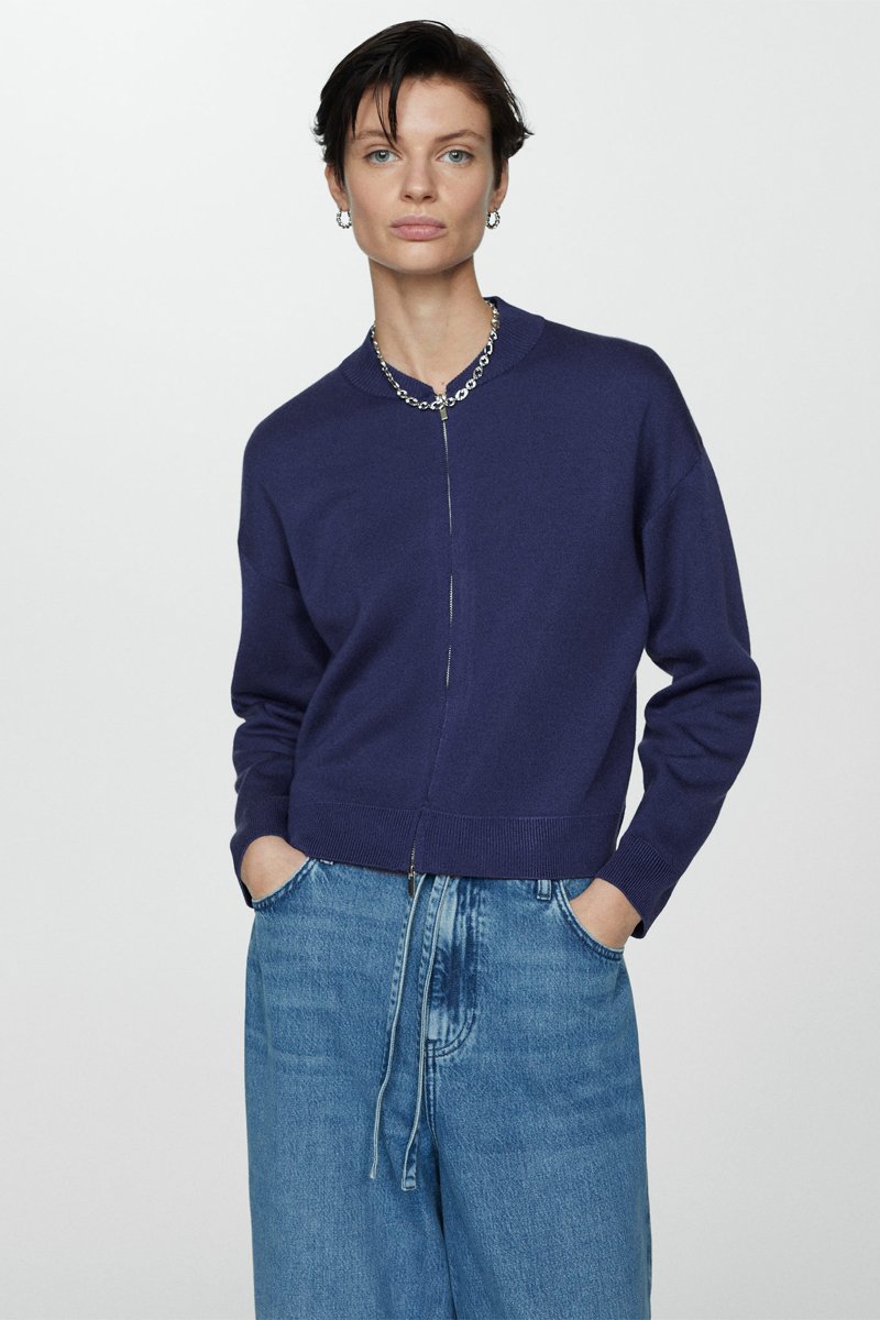 Cardigan maille fermeture éclair - Bleu marine