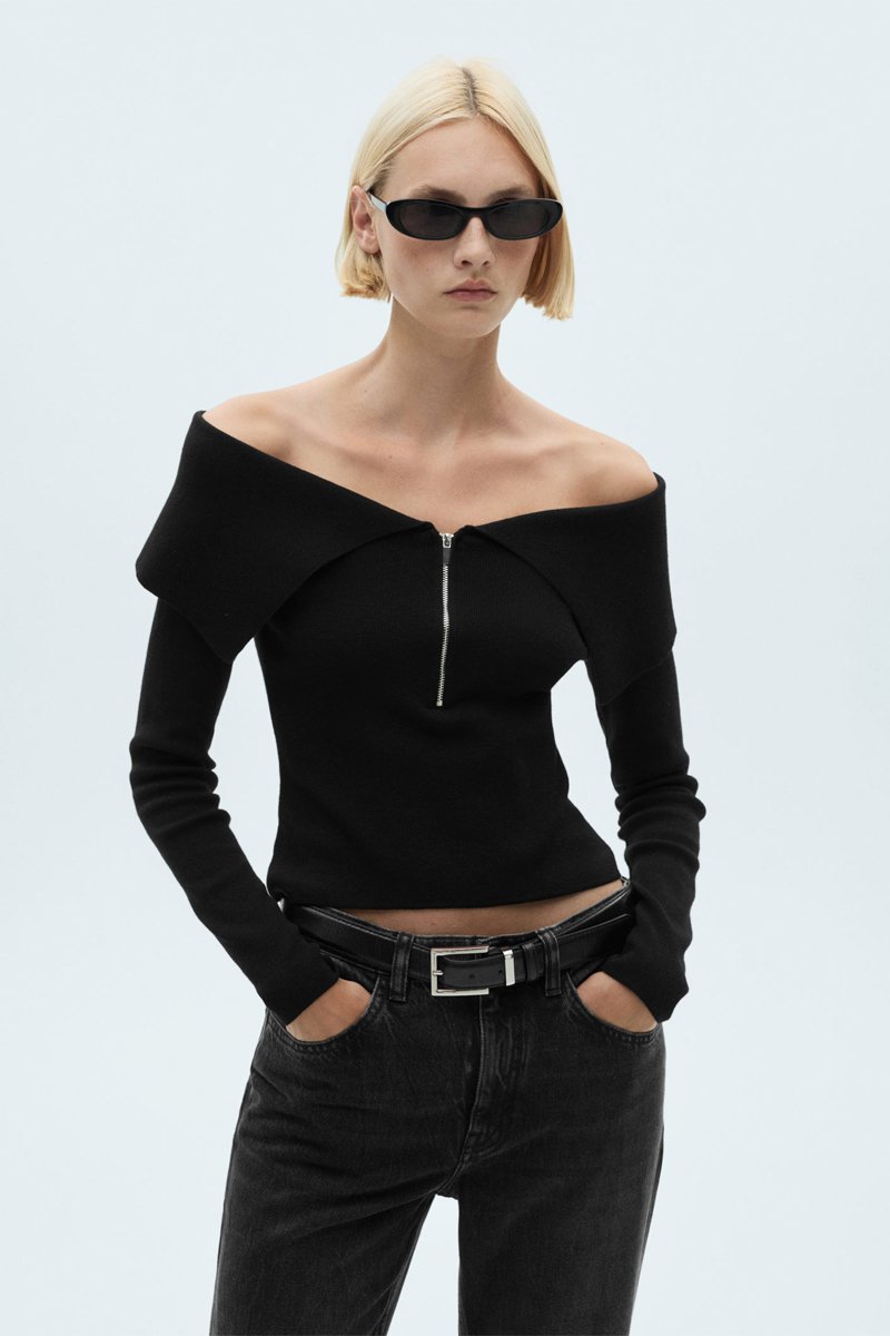 Pull-over épaules dénudées fermeture Éclair - Noir