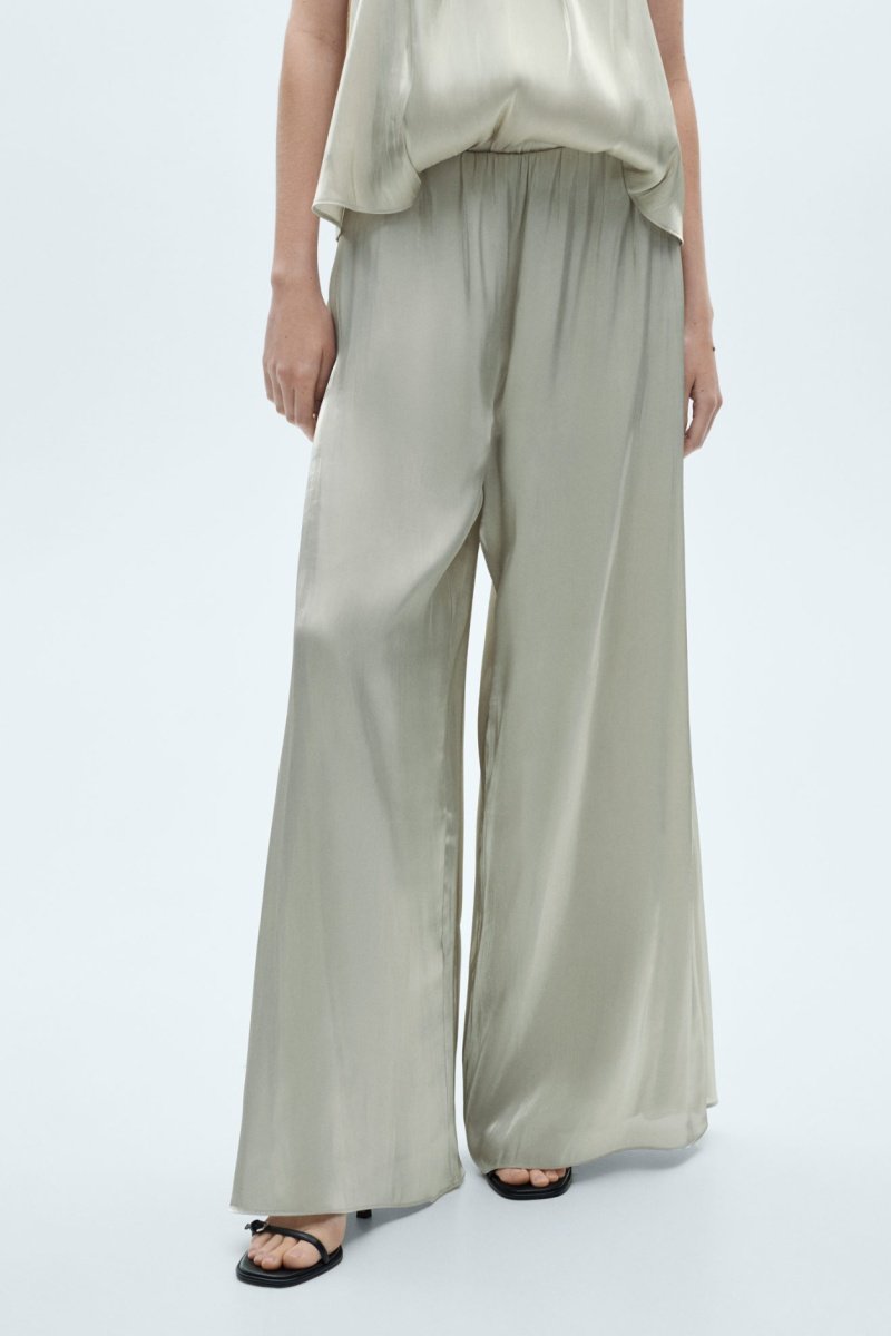 Pantalon fluide satiné - Vert-gris