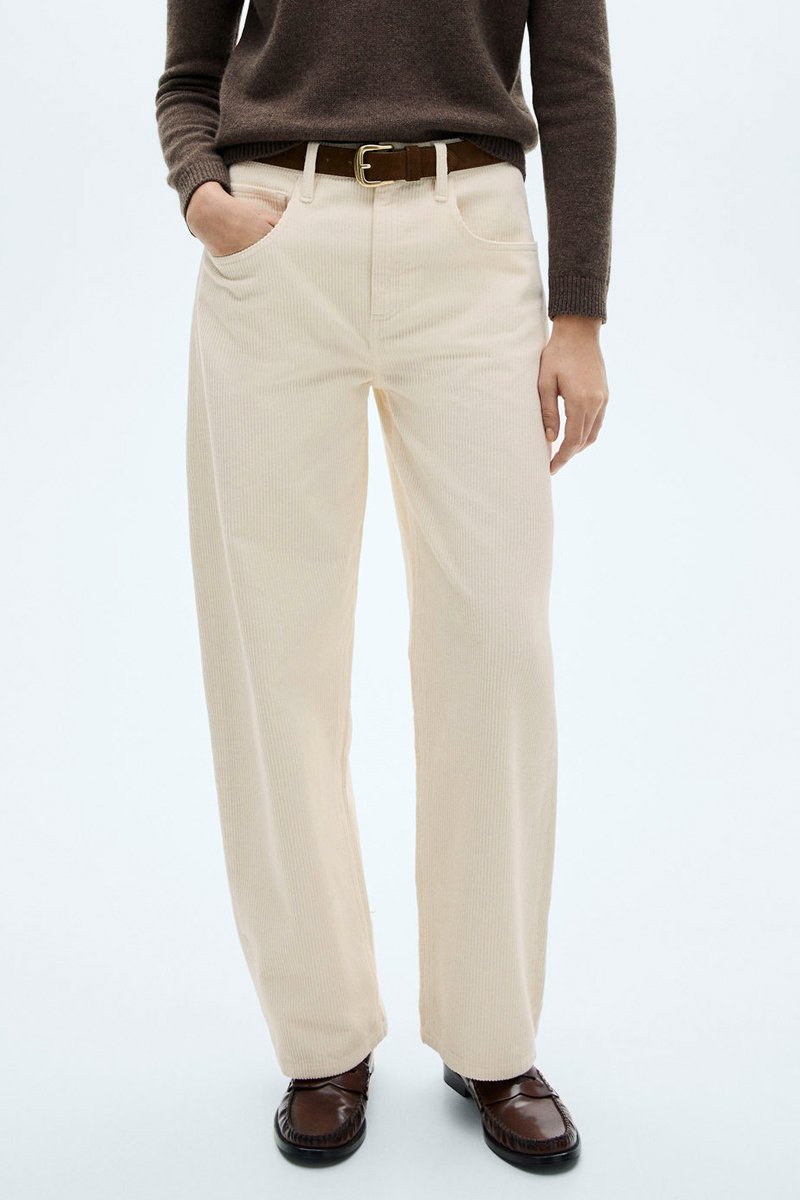 Pantalon velours côtelé balloon taille haute - Blanc cassé