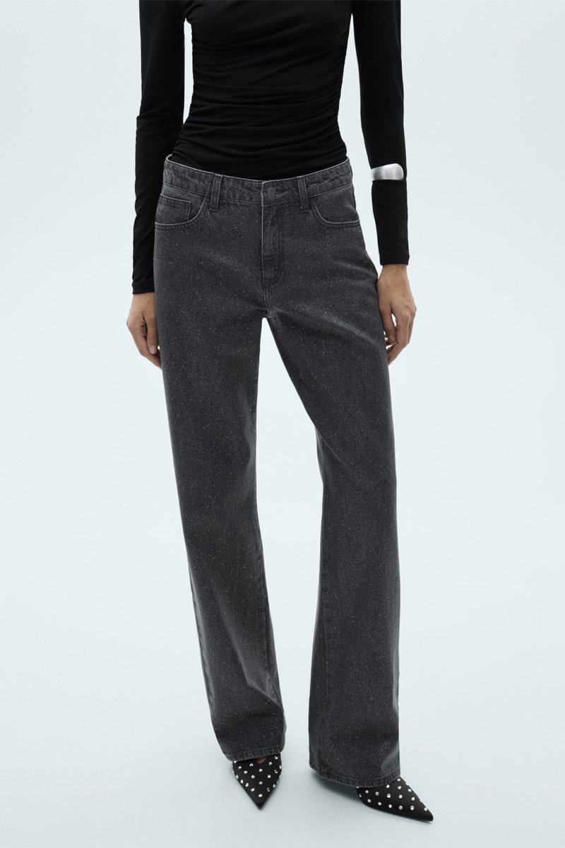 Jean droit brillant.
