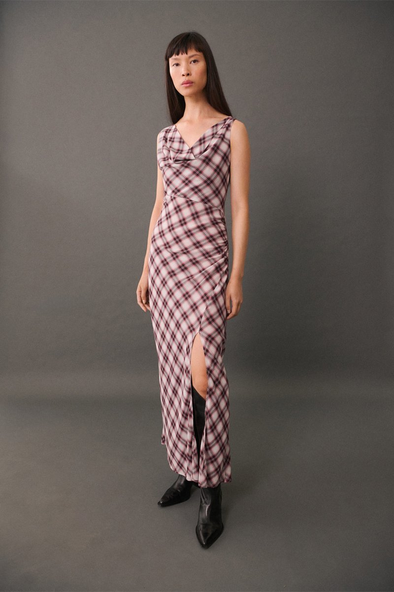 Robe midi en imprimé carreaux.