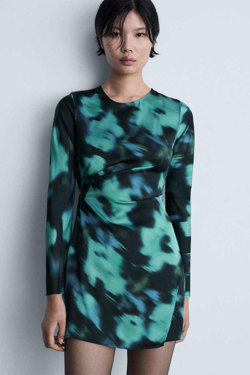 Robe courte imprimée - Noir et vert