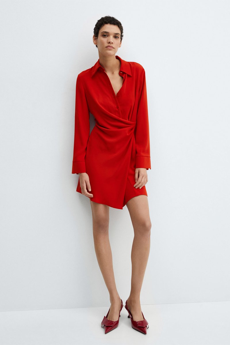 Robe cache-cœur drapée - Rouge