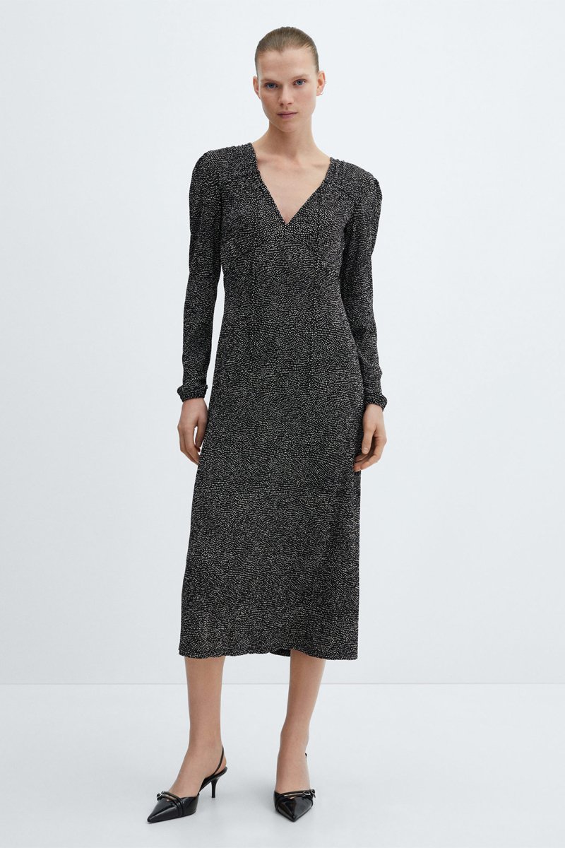 Robe imprimée à noeud - Noir