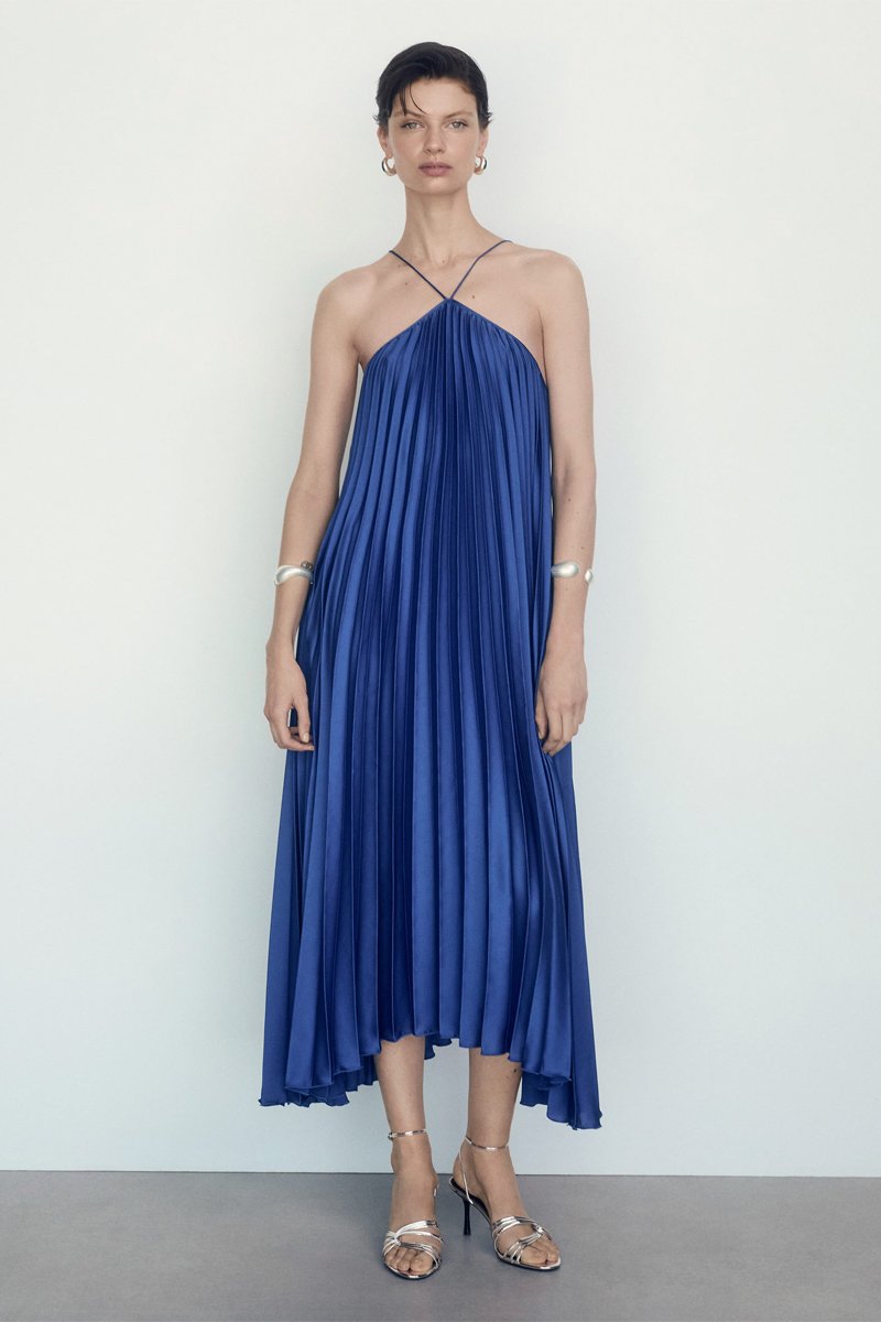 Robe plissée emmanchures américaines - Bleu