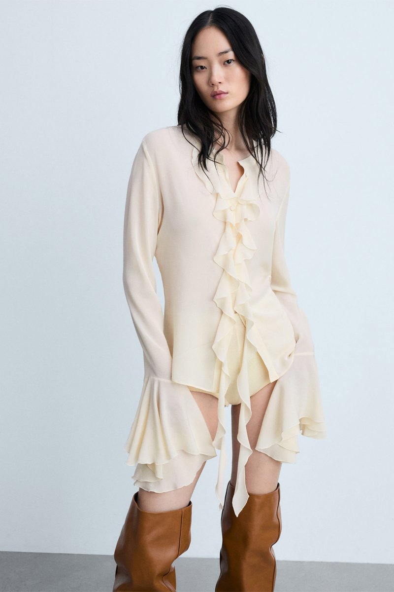 Chemise volants manches longues - Écru
