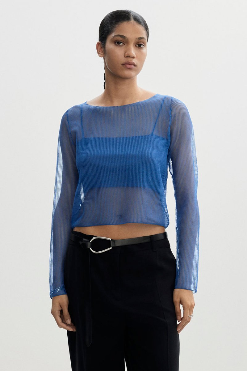Pull-over semi-transparent top combiné - Bleu électrique
