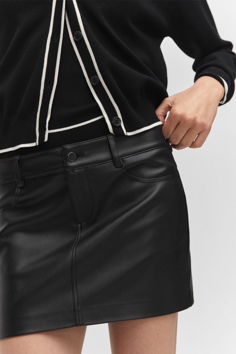 Minijupe similicuir.